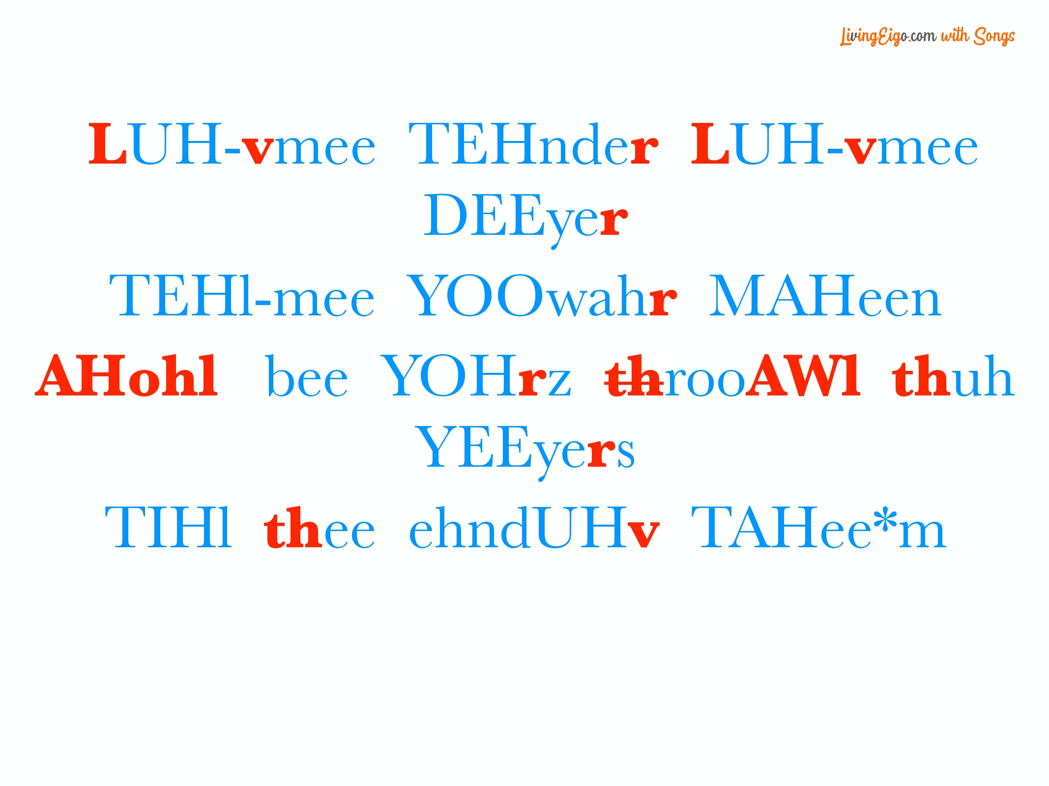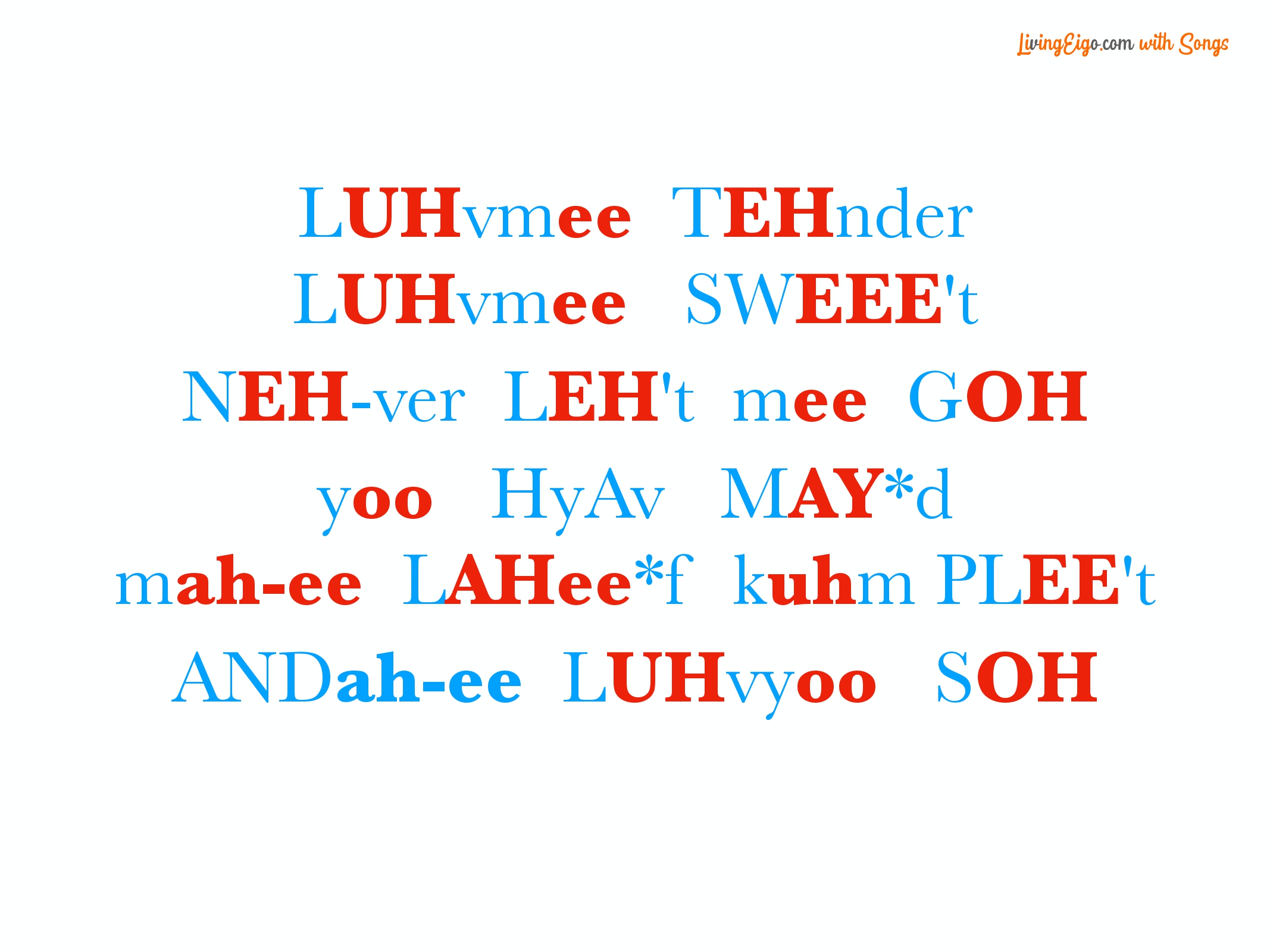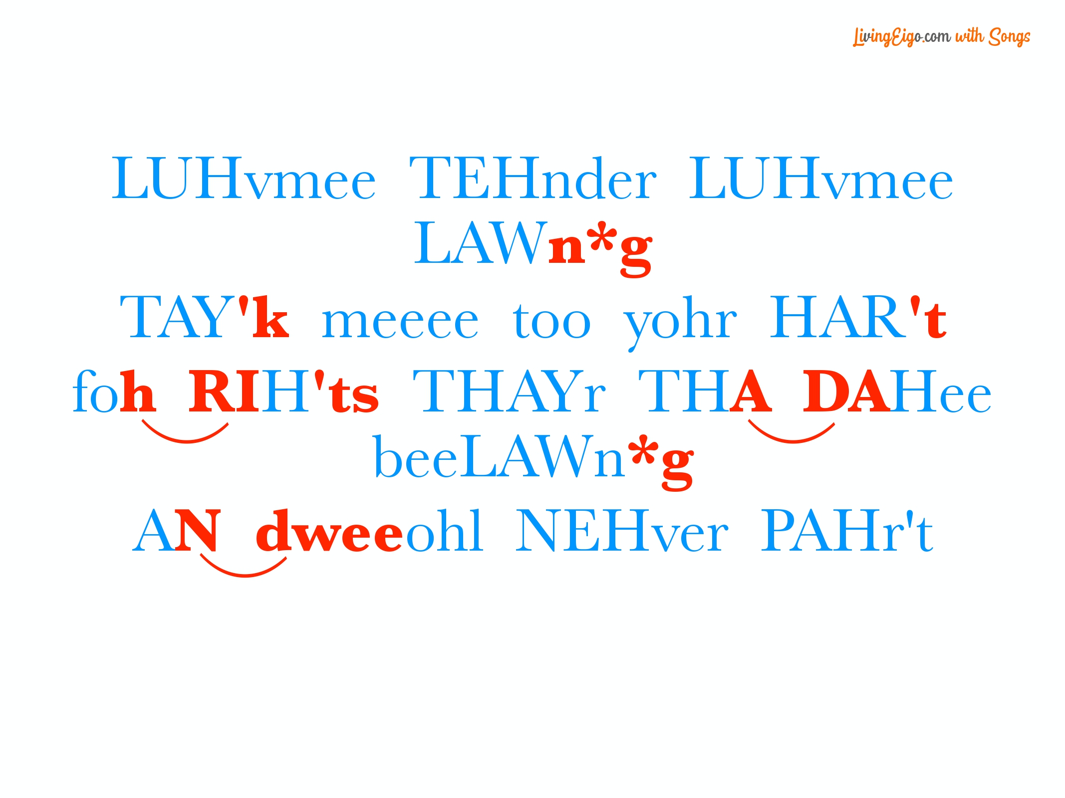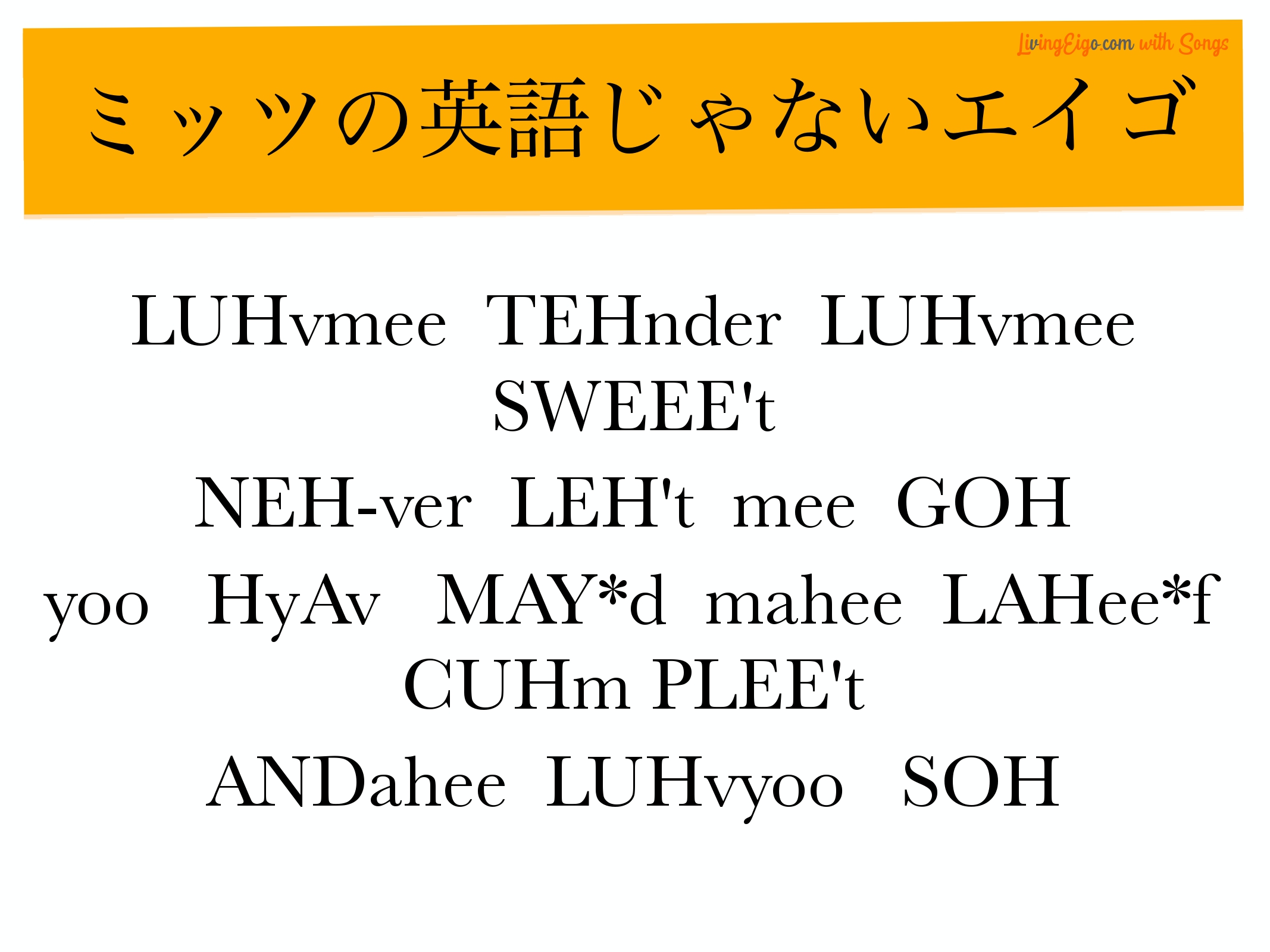 歌の歌詞、リードページ(コード付きのページ)、発音、